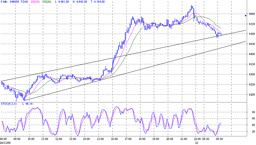 Tendenz - Die Erholung wird vorerst weitergehen. Grosse Chartwiderstände erst zwischen 5600-5800. Aber dann wird der Weg wieder steinig. SMI Vorbörslich plus 68 Punkte.