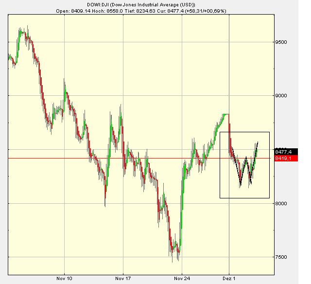 nach oben zu laufen ist schon sehr begrenzt, aber es kann durchaus einpaar punkte hochlaufen bevor es wieder runter geht,dann kaufe ich billig shorts nach kein problem.Wir sind gut 15 % vom tief , was soll da noch viel kommen.Ich sehe es so das im januar gleich nach unten fetzt.Die geschichte von den leuten die abgeltungssteuer sparen wollen und jetzt noch schnell einsteigen kenne ich , denke die meisten die abgeltungssteuer sparen wollten sind wie immer schon im september , oktober rein .Da kommt nichts mehr , und grosse investoren ist die abgeltungssteuer auch egal.Und der dow läuft auch in die gewünschte richtung , hoffentlich auch bis zum schluss mit mehr drive heute bitte.Habe ich mir verdient als bekennender shortie