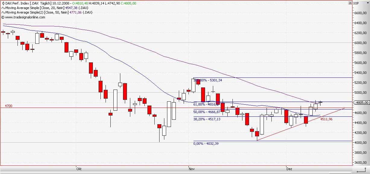 auch sowas gibt es. Das war heute ein Konsolidierungstag, nichts weiter. Deswegen herumzuposaunen, daß es jetzt nur noch abwärtsgehen kann ist genauso verfehlt, wie Prophezeiungen, daß wir diese Woche noch auf 5000 gehen. Gemach, Leute, Rom ist nicht an einem Tag erbaut worden. Wenn es morgen bis auf annähernd 4700 zurückgeht wäre das eine vollkommen gesunde Bewegung.