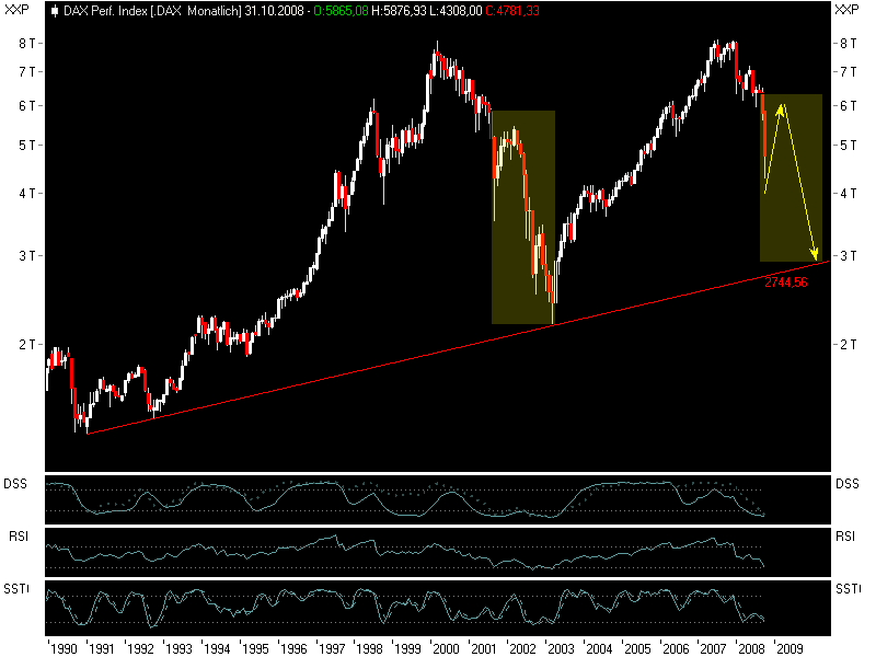 Seit dem schwarzen Montag kämpft alles darum,eine Seitwärtsbewegung hinzukriegen. Das ist auch gar nicht anders denkbar,um sich ohne den totalen Crash dem Boden zu nähern. Und die Seitwärtsbewegung ist auch sichtbar,nur mit einer enormen Vola.