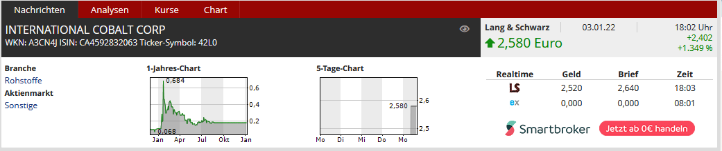 Int. Cobalt kein aktueller Kurs verfügbar