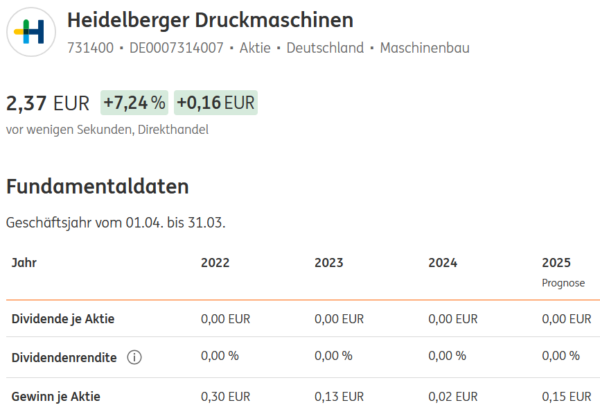 Eine ganz persönliche Meinung noch: Alle, die hier gerade auf die 1,7 zum Wiedereinstieg warten, werden hinterherschauen. Das passiert nur, wenn‘s am Gesamtmarkt so richtig scheppert oder Heidelberg operativ wieder die Biege nach unten macht (und dann werden diese Orders auch gelöscht). Dazu war die Nachricht vom Rüstungs-Einstieg einfach zu disruptiv.