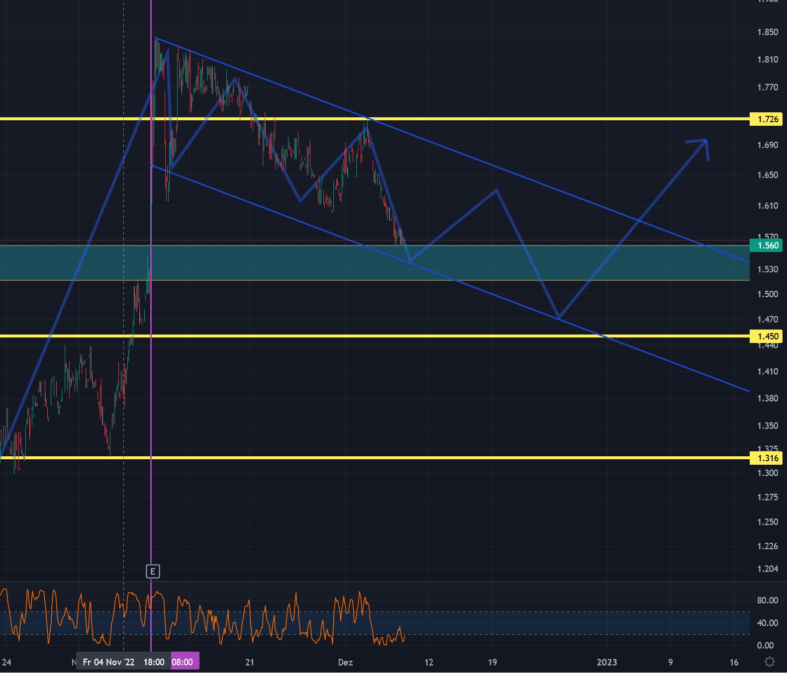 Jetzt heißt es die Entwicklung gut zu beobachten: Vollendung des Bulls Flag Patterns (?) oder werden tiefere Kursniveaus angesteuert.