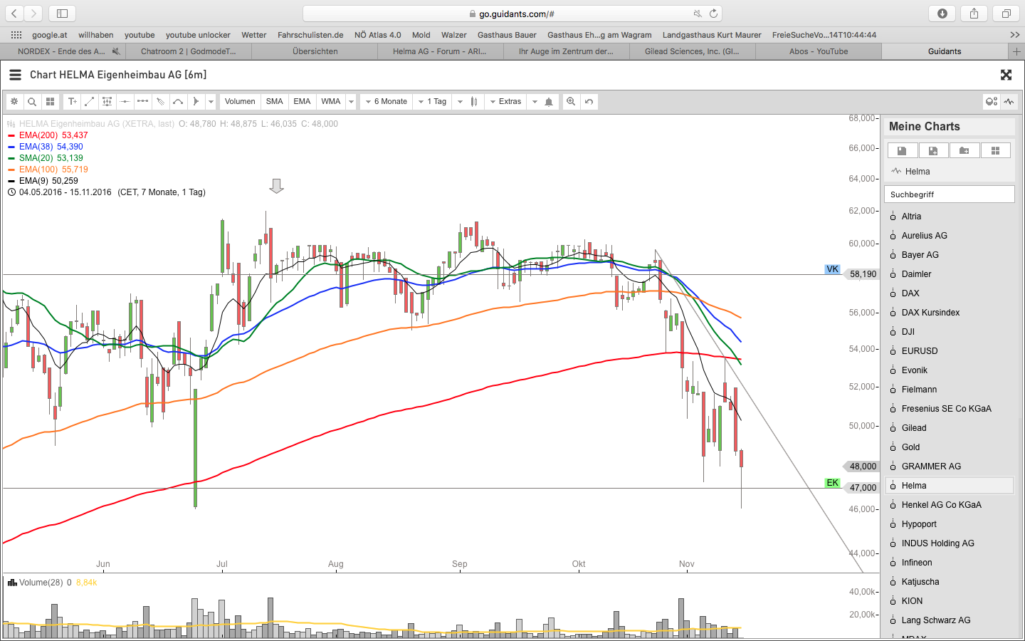 In den letzten 2 Wochen sind so viele Aktien im Small und MittelCap-Bereich regelrecht abgestürzt aus operativen Gründen (z.B. Adva), da die Aktie ganz einfach sehr gut gelaufen ist (z.B. Datagroup) oder aus gar keinen Gründen (z.B. Cancom). Das alles sagt mir, dass der Angstfaktor an der Börse durch die US-Präsidentenwahl immens groß geworden ist und sich einige zumindest temporär von der Börse verabschieden. Bei kleineren Werten wie halt Helma einer ist wird das halt an den Kursen sehr deutlich sichtbar. Ist halt mal so bei kleineren Aktienwerten.