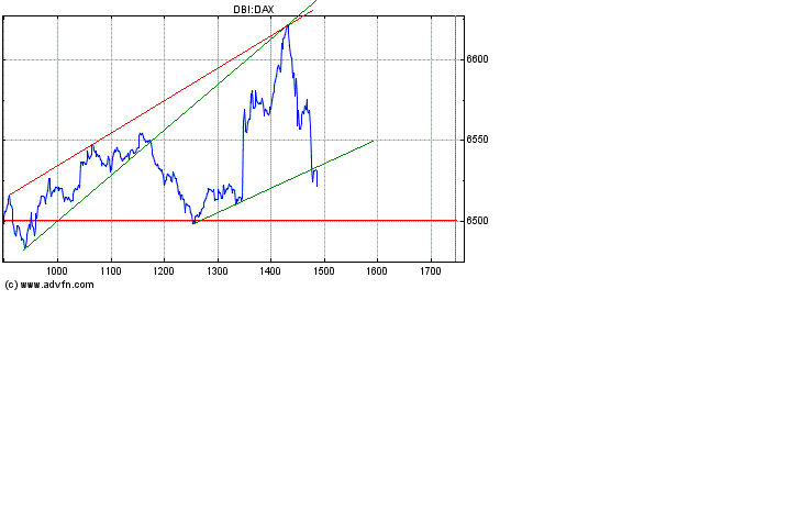 846900 weiter auf der Lauer liegen. Erst bei weiterer Klarheit über das weitere Schicksal, des Deutschen Leitindex würden wir agieren. Sollte der DAX auf Schlusskursbasis unter die 6450 Punkte Marke fallen, lohnt eine Shortspekulation mit Kursziel 5800-6000 Punkten. Bei einer erfolgreichen Verteidigung der 6500 Punkte Marke kann eine spekualtive Longposition mit Kursziel 6800-7000 Punkte gewagt werden. Versehen sie in beiden Fällen ihre Tradingposition unbedingt mit einem individuellen Trailingstop von z.B. 60 Punkten auf Schlusskursbasis.