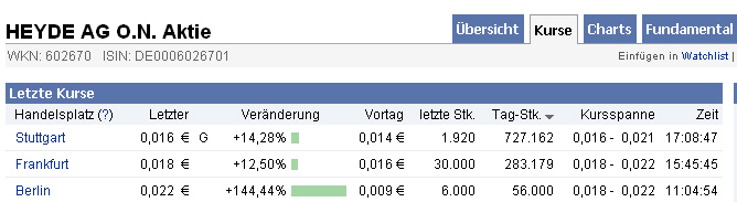 Achtung Heyde AG , raus aus der Insolvenz