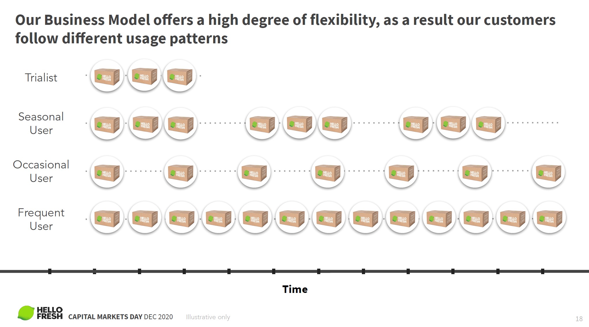 Unbestritten, Stay-at-home und die erneute Schließung der Restaurants treiben die Nachfrage nach Essenslieferungen und Kockboxen an. Doch das wird sich meines Erachtens nicht wieder völlig ändern, wenn die Beschränkungen zurückgenommen werden und Restaurants wieder "am Start" sind. Je mehr Work-from-Home sich durchsetzt, desto weniger Menschen essen in Kantinen und auch die mittäglichen Restaurantbesuche mit Kollegen oder Kunden werden spürbar weniger als früher.