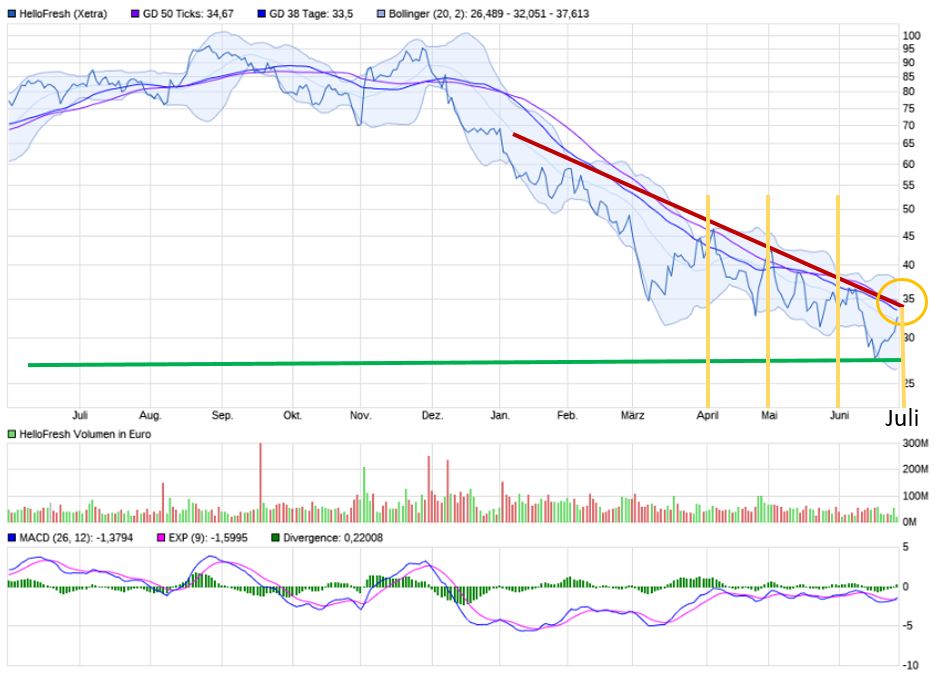 Und dann gibt es Wachstumswerte wie Hellofresh oder die großen US Tecs, die viel Cash haben, hohe Cashflows produzieren. Die profitieren ja eigentlich gleich mehrfach. Einerseits weil andere Unternehmen günstiger werden, die sie mit dem hohen Cash übernehmen können. Andererseits weil sie selbst höhere Zinsen für ihre Festanlagen bekommen statt zuletzt faktisch Nullzins auf Tagesgeld.