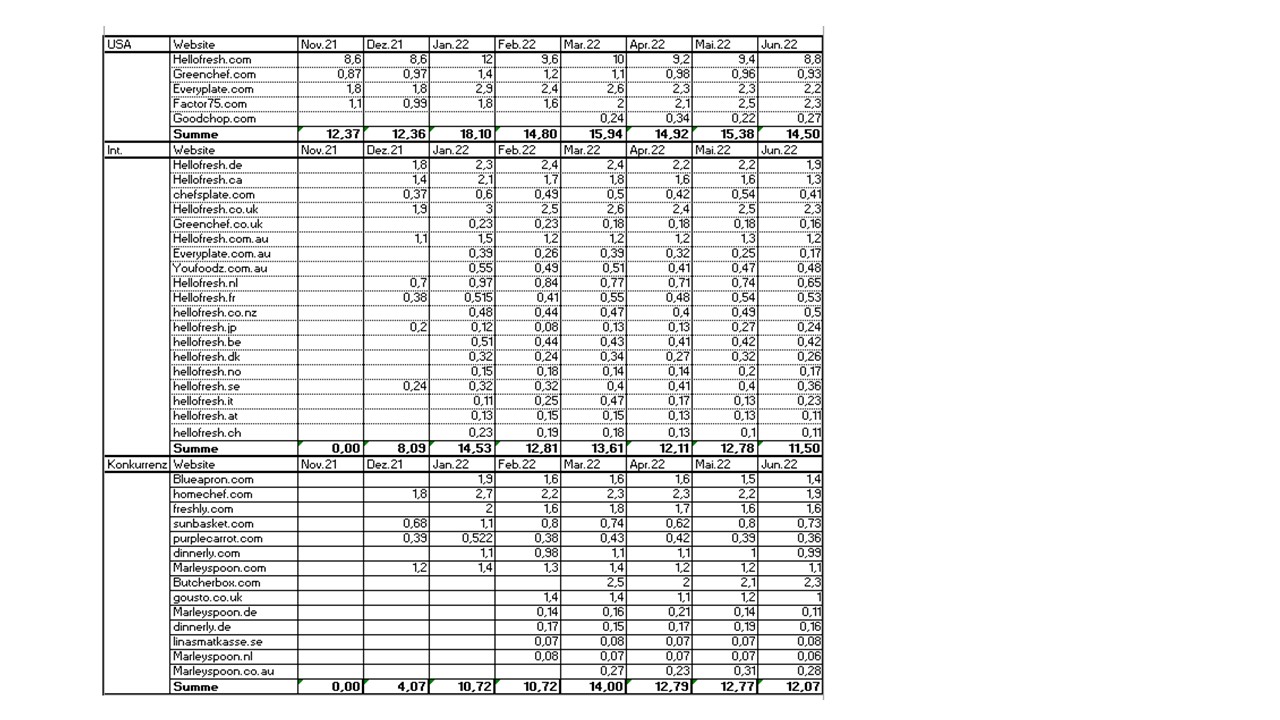 Ich habe Daten ab Q4 2020. Aggregiert über alle Marken und Länder.