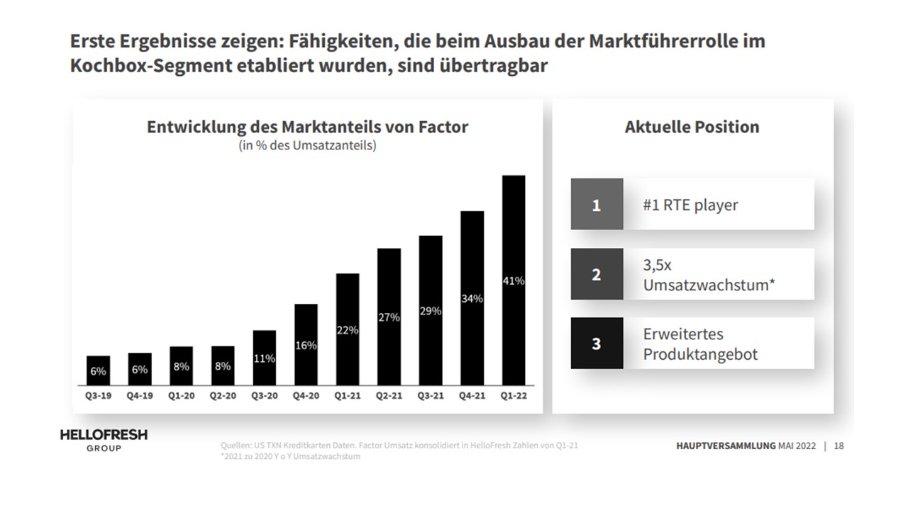 - Factor gibt nun einen Marktanteil bei RTE von ca. 50% an. Bei der Übernahme waren es ca. 10%
