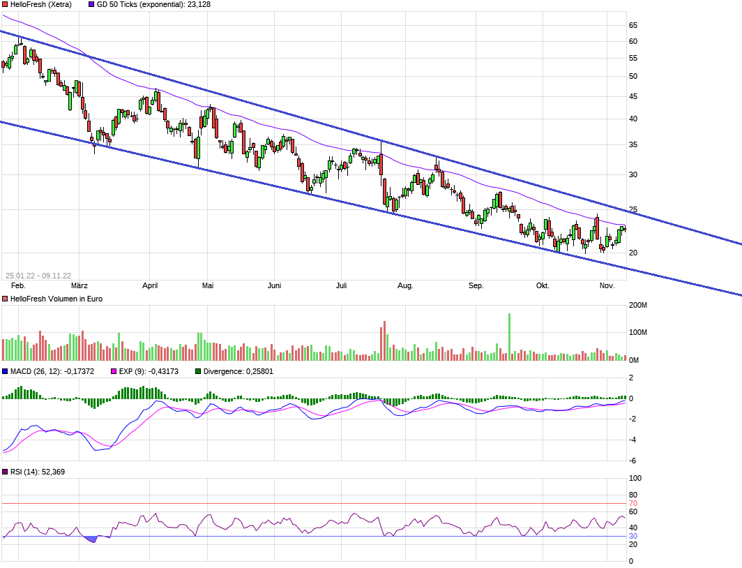 HF hat aber deutlich gemacht, dass Sie die Preise nicht so stark anheben wollen wie die Lebensmittelinflation, damit sich in Summe die relative Leistbarkeit verbessert und der Kunde somit eine bessere Value Proporsition hat bzw. der Nutzen für den Kunden steigt. Dies sollte sich aber mittelfristig hinsichtlich des Wachstums positiv bemerkbar machen, da die Kochboxen dann für mehr Kunden erschwinglich sein sollte und sich der Abstand zu Restaurants vergrößert bzw. zu Supermärkten verringert. Man hat ja langfristig das Ziel, dass man preislich auf ein Niveau mit Supermärkten kommt.