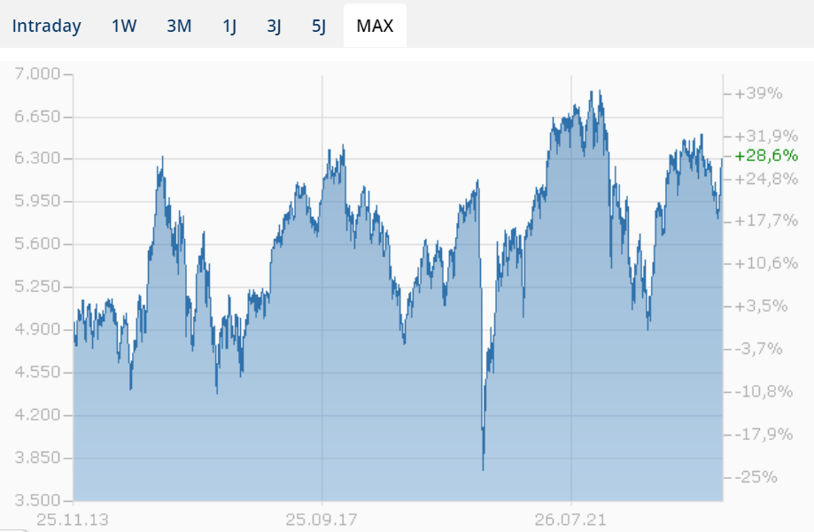 11.04.2023 „Wahrer“ Dax: Warum der reine Kursindex schlechter performt als solide Staatsanleihen - t3n.de/news/...-dax-kursindex-performance-dividenden-1546389/ "...Was viele nicht wissen: Die auf den ersten Blick positive Entwicklung des Deutschen Aktienindex (Dax) seit dem Jahr 2000 beruht vor allem auf Dividenden. Der „wahre“ Dax-Kurs, bei dem keine Dividenden einberechnet werden, tritt dagegen auf der Stelle. Wer die Kursentwicklung des wichtigsten deutschen Aktienindex (Dax) verfolgt, bekommt in den Medien normalerweise den sogenannten Dax-Performance-Index präsentiert. In dessen Berechnung fließen auch Dividenden und deren Wiederanlage ein. Der „wahre“ Dax ist dagegen ein reiner Kursindex. Dieser lässt die Ausschüttungen der Konzerne außen vor und spiegelt damit nur die Kursveränderungen der wichtigsten deutschen Aktien wider. Der Unterschied bei der Performance dieser beiden Index-Varianten könnte größer nicht sein....Wie Handelsblatt-Redakteur Ulf Sommer angesichts des vor Ostern 2023 erreichten Jahreshochs beim Dax noch einmal verdeutlicht, ist der Dax zuletzt vor allem wegen der Dividenden so stark gestiegen. Seit dem Jahr 2000 beruhten „fast alle Gewinne aus dem Dax allein auf Dividenden“, so Sommer. Zur Verdeutlichung: Während der Dax – inklusive der Dividenden – seinen Kurswert seit Anfang 2000 von knapp 7.000 auf aktuell rund 15.700 Punkte mehr als verdoppelt hat, bleibt der reine Kursindex weit abgeschlagen dahinter zurück. Hier steht lediglich ein Plus von rund fünf Prozent zu Buche.....Das heißt, die Kursentwicklung des „wahren“ Dax entspricht einer jährlichen Durchschnittsverzinsung von 0,2 Prozent, wie das Handelsblatt vorrechnet. In den vergangenen fünf Jahren kam es sogar zu einem Verlust von 1,4 Prozent pro Jahr....Andere weltweit wichtige Aktienindizes wie Euro Stoxx 50, Dow Jones, Nasdaq und S&P 500 werden übrigens ohne die Einberechnung der Dividenden aufgestellt.