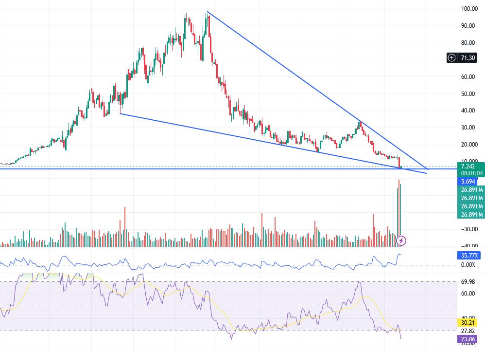 ... und, wie es scheint, auch den Ausbruch unter hohem Volumen. - Jetzt aber wird es darauf ankommen, ob der auch stabilisiert werden kann; was nicht zuletzt auch vom Rückgewinn des Vertrauens abhängen wird ...