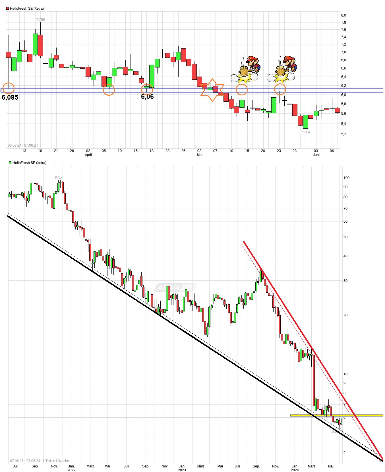Wenn katjuscha jetzt die 50 Euro für die Hellofresh Aktie ernst meint, sollte er einen Volkshochschulkurs Börse für Anfänger belegen. Das wird jetzt richtig würdelos. Niemand irrt mehr. Jeder irrt mal, kein Problem. Aber den eigenen Fehler muss man irgendwann erkennen, wenn man das so gnadenlos stur durchzieht, wird es richtig würdelos.
