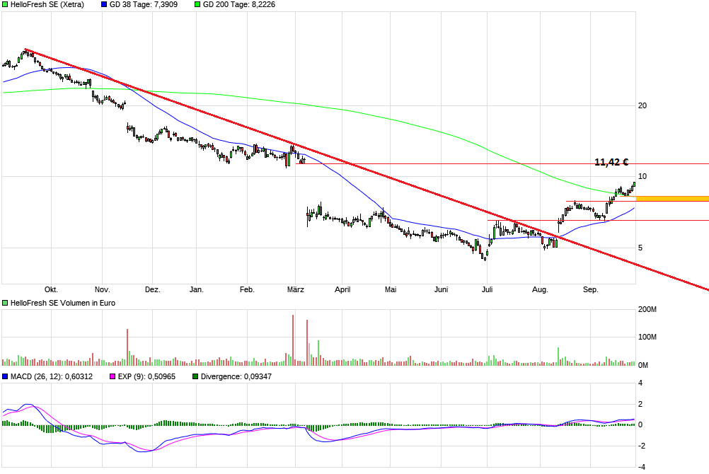 Die Meinung vom UBS Analysten vom 13.09 „Der Kochboxenanbieter gehe zwar Schritte in die richtige Richtung, schrieb Analyst Jo Barnet-Lamb in seinem am Freitag vorliegenden Kommentar. Die Jahresziele blieben aber eine enorme Herausforderung.“ teile ich.