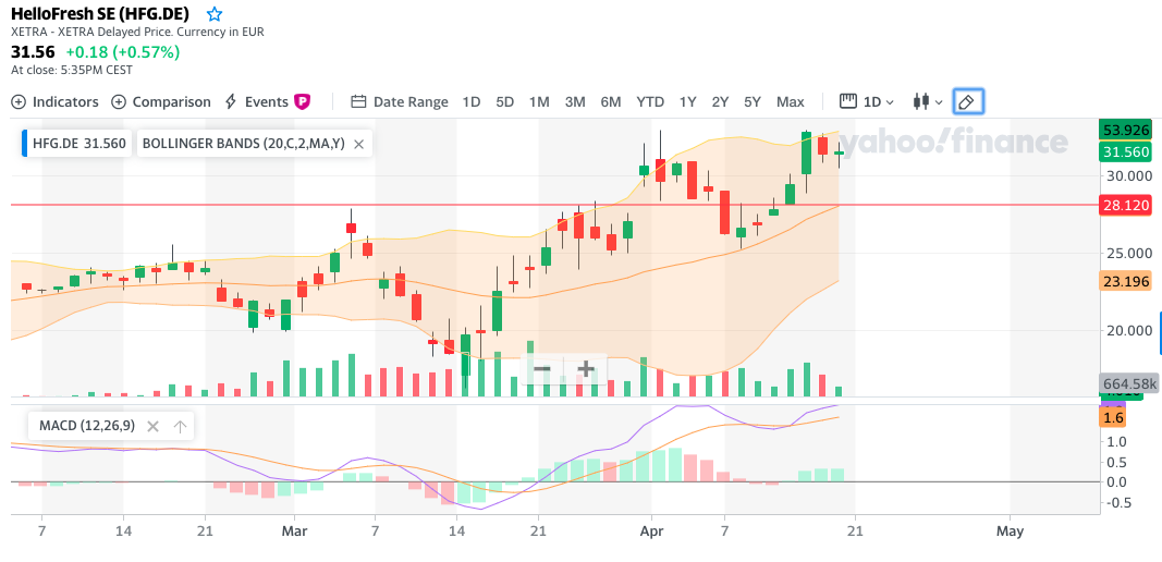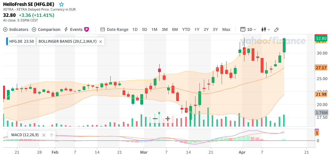 Charttechnisch betrachtet könnte es also jetzt weiter hoch gehen. Mal schaun … 35 € könnten wir schon nächsten Montag sehen.