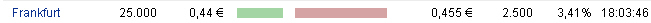 das BID ist geschrumpft, und statt dessen ist das ASK gut gefüllt... im Moment herscht (noch) die Ruhe vor dem Sturm... wir brauchen dringend eine neue Phantasie mit irgend einem Unternehmen sonst... seh ich hier schwarz