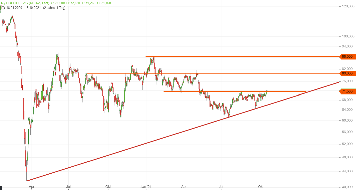 Ich könnte mir vorstellen, dass diese Q3-Zahlen die Sache entscheiden werden. Aus charttechnischer Sicht kann man das aber gelassen abwarten. Geht es unter 67,0-67,5 €, wäre die Sache wieder klar bearish. Ob man deshalb verkaufen muss, wenn man fundamental von der Aktie überzeugt ist, muss dann jeder für sich entscheiden. Aus technischer Sicht ist aber zumindest ein Zukauf dann erstmal nicht sinnvoll. Geht es über 72,0-72,5 €, wäre die Aktie wirklich klar bullish, und man müsste fast schon zwingend zukaufen. Die knapp 5 € dazwischen sind Niemandsland.