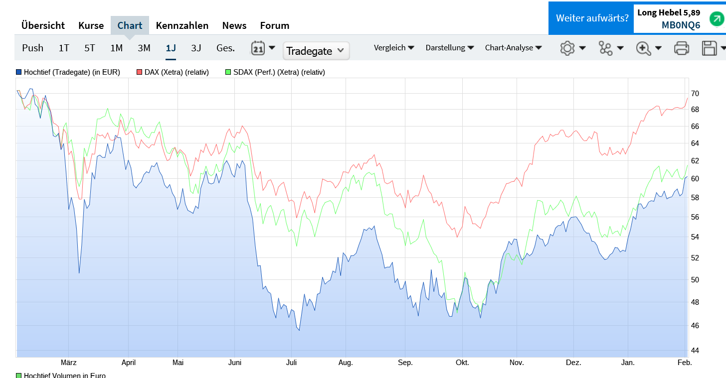ESSEN (dpa-AFX) - Der Baukonzern Hochtief hat 2022 deutlich mehr verdient als im Vorjahr. DieDividende will der Vorstand um Unternehmenschef Juan Santamaría mehr als verdoppeln. "Hochtief hat im Jahr 2022 trotz der Herausforderungen des aktuellen makroökonomischen Umfelds eine solide Leistung erbracht", sagte Santamaría am Donnerstag in einer Pressekonferenz. An derBörse kam dies gut an. Die Aktie lag am Nachmittag rund 4,8 Prozent im Plus bei 60,38 Euro.