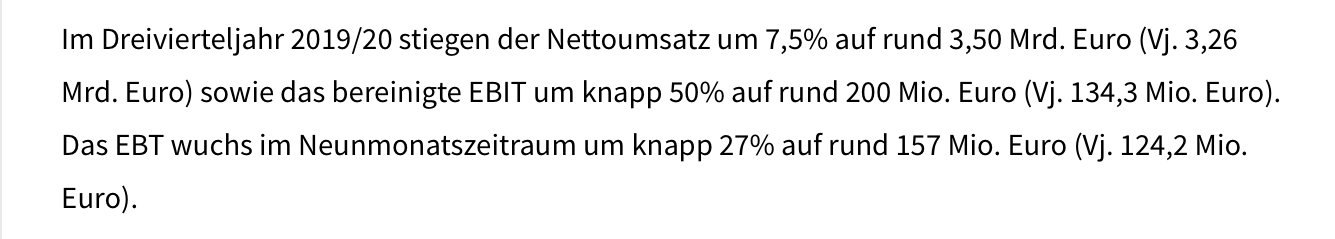 | KENNZAHLEN: Hornbach Baumarkt AG | ||