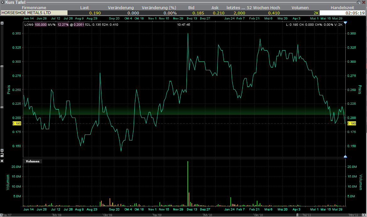 Horseshoe Metals currently has $2.5 million in cash which is sufficient to conduct all the drilling programs through the end of 2012.
