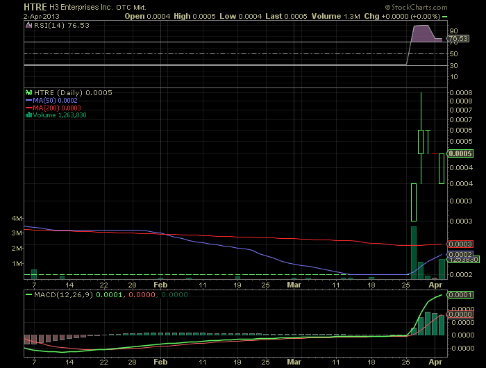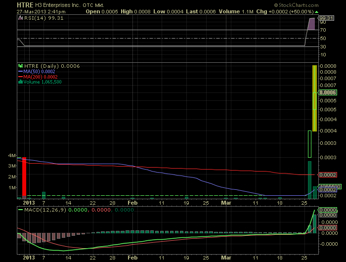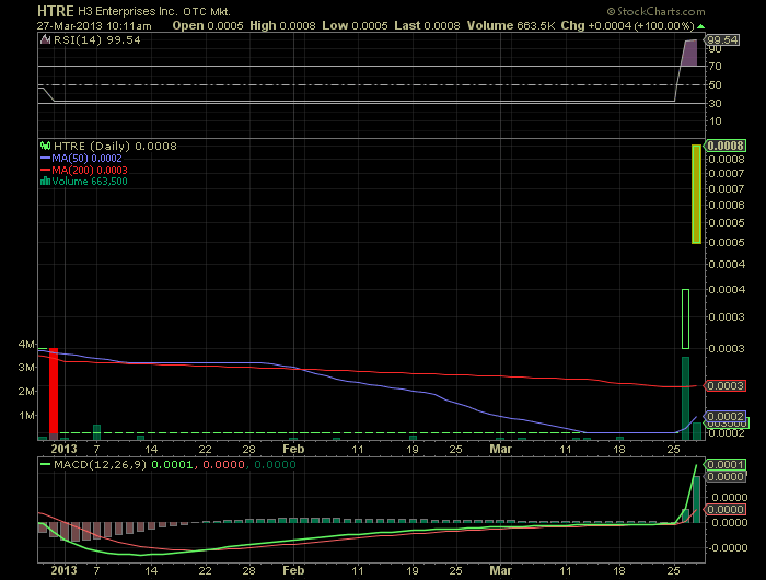 könnte heute explosionsartig nach oben schießen. denke H3-Enterprises sollte jeder penny zocker die kommenden tage auf der rechnung haben.