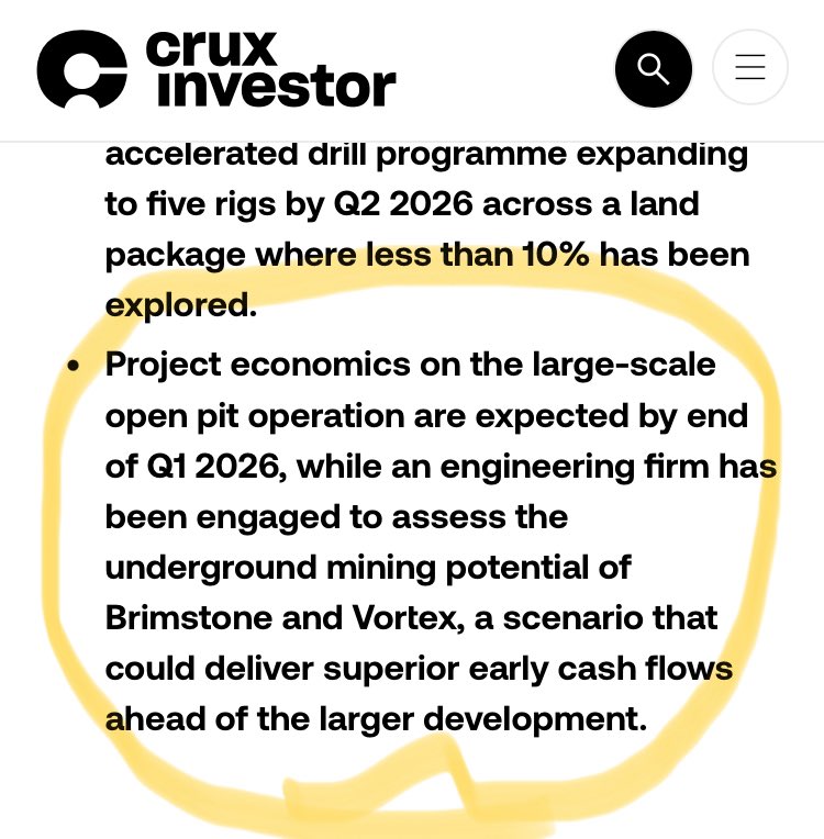 Die Wirtschaftlichkeitsberechnung für den groß angelegten Tagebau wird bis Ende des ersten Quartals 2026 erwartet. Gleichzeitig wurde ein Ingenieurbüro beauftragt, das Untertagebaupotenzial von Brimstone und Vortex zu bewerten. Dieses Szenario könnte vor der größeren Erschließung zu überdurchschnittlichen frühen Cashflows führen.