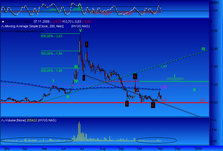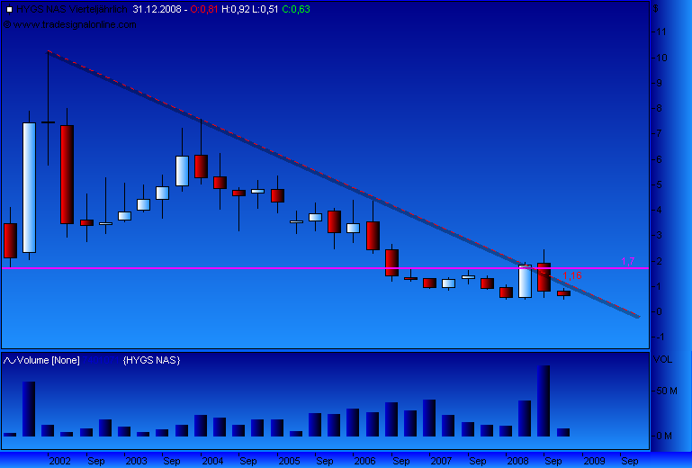 alles in allem sollte jedem Klar sein das hier nur dauerhaft gehalten werden sollte, wenn wirklich auf den Minimum Preisen gekauft wurde. Die Liquidität und die Volatilität von hygs kann aber jedem einigermaßen erfahrene Trader eine Menge Cash einbringen. mit einer zweit position kann man hier sogar noch mehr dran drehen. NUR INFORMATIONEN NUR ALLEINE AUF DEN KURS BEZOGEN SIND HIER ZU WENIG, du musst dir mehr als nur News und Kurs anschauen um das große Feld um HYGS zu erkennen und zu deuten.