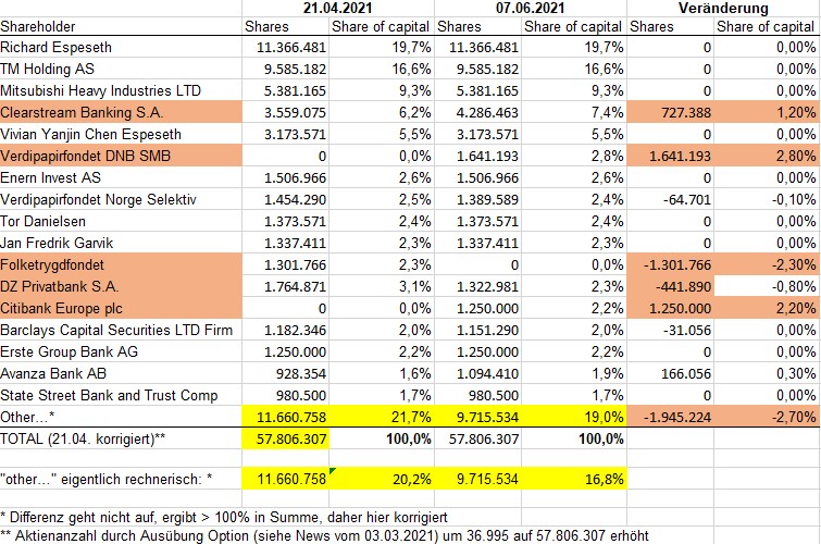 Ein neuer Fonds und die Citibank sind eingestiegen, Clearstream hat deutlich aufgestockt und der Norwegische Staatsfonds ist aber raus.