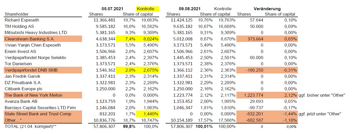 Nach dem Höchstkurs von 75,60 NOK wurde der Aktienkurs um 73 Prozent auf den aktuellen Kurs von 21 NOK gesenkt.