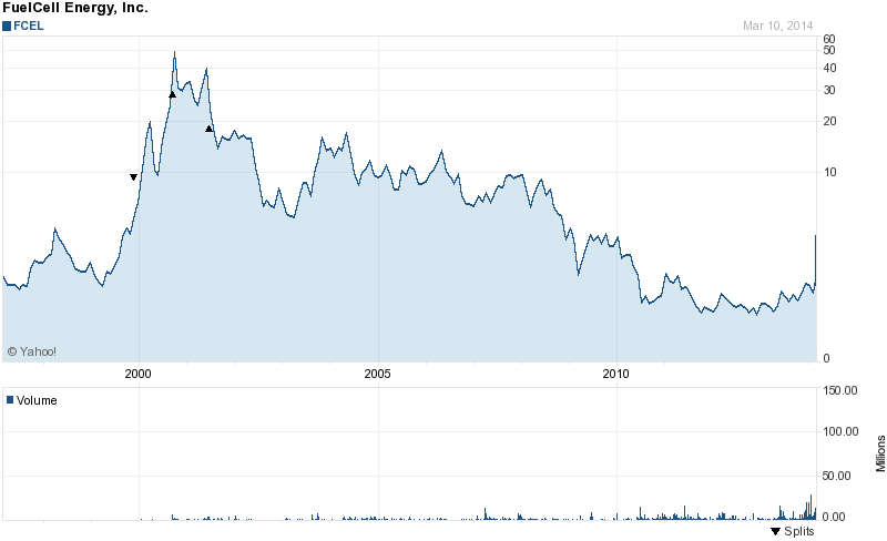 Ich möchte nicht unerwähnt lassen,dass Hypersolar und NEAH vermutlich eher 2 sog "Zockerwerte" sind,die nicht besonders viel substanz besitzen,dass muss man einfach so sagen,natürlich lockt hier dass schnelle Geld und gerade deshalb darf man auf keinen Fall den Exit verpassen ! Der mit abstand beste Wert,also für "nachhaltiges Investieren" ist meiner Meinung nach Fuelcell energy (FCEL) hier ist bei 4 Dollar auch noch ordentlich Luft nach oben,wenn man den Langfristchart zugrunde legt: