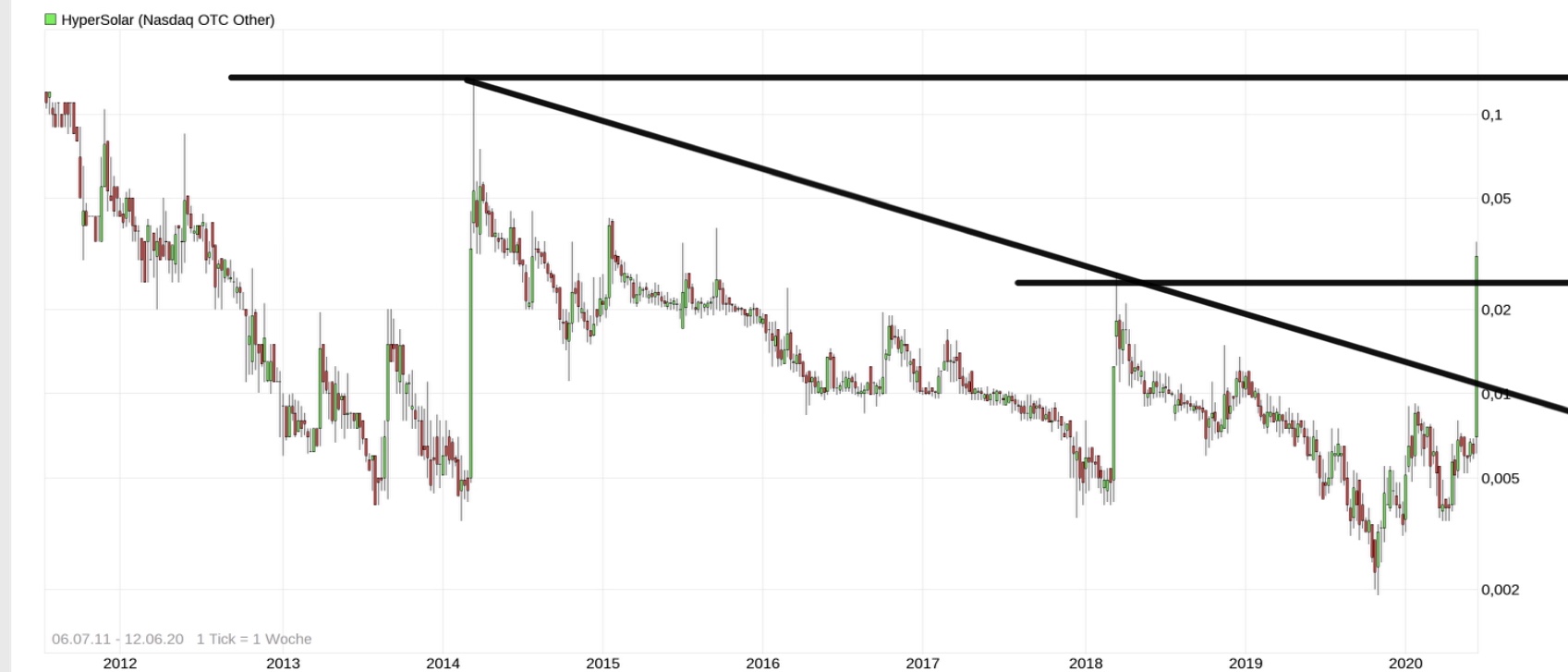 Der Chart spricht mit mir und obwohl er mich bei $0,04 zum Wochenschluss betrogen hat... jaja die Prognose kam bei 0,007 muss man sagen.... schlimm schlimm... wie kann ich mich da nur verschätzen .... sagt mir der Chart dass wir wichtige Widerstände geschafft haben auf dem Weg nächste Woche den Turbo zu zünden.
