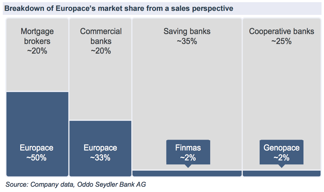 Ach ja, und damit hätte EUROPACE potentiell einen Anteil am Gesamtmarkt von um die 80 Prozent. Was dies an Umsatz bedeuten würde, das mag jemand Anderes ermitteln.