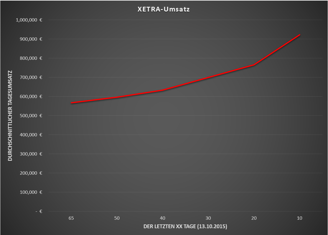 Für die SDAX-Freunde habe ich einmal die Entwicklung der durchschnittlichen Tagesumsätze der letzten Tage errechnet und in eine kleine Grafik gepackt.
