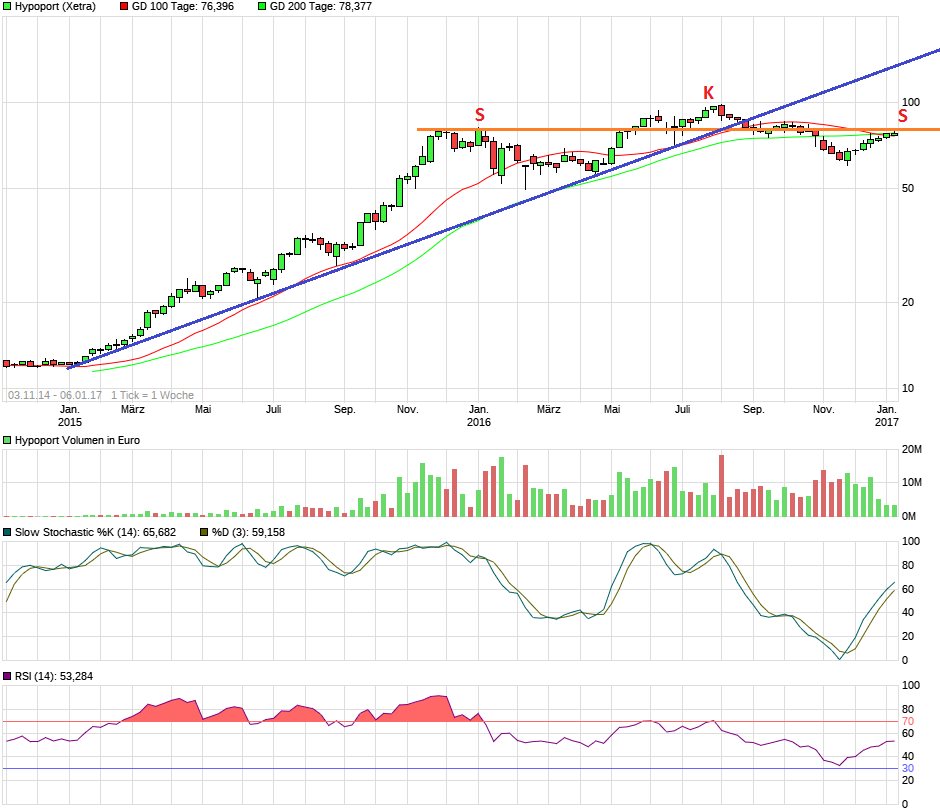Tiefstkurs lag 2016 bei 50 Euro, allerdings wurde da eine Verachtfachung aus dem Vorjahr auskonsolidiert, derartiges ist 2017 kaum zu befürchten.