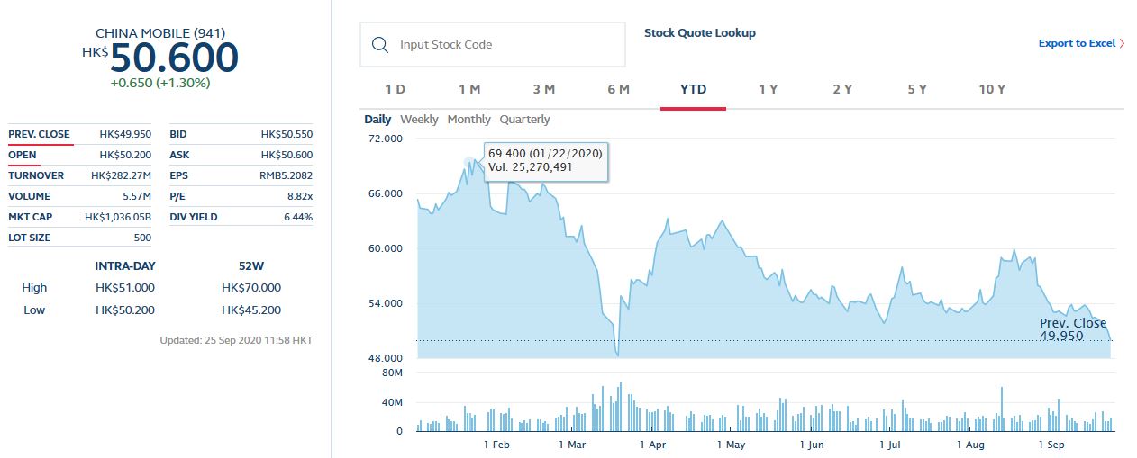 An der Börse in Hongkong ist der Tiefstkurs vom März noch nicht unterschritten. Man kämpft mit der 50'er Marke...