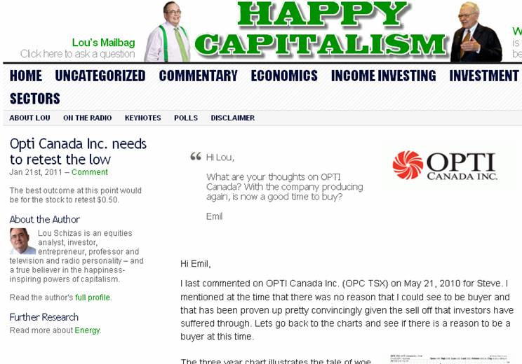 Und so ganz von der lockeren Seite möchte ich die Ölsand-Gewinnung ja auch nicht nehmen - oder generell die Ölgewinnung. Aber OPTI sollte da recht gut dahstehen. (wennn ich ein bisschen hämisch werden dürfte, würde ich sagen: "Die dreckigeren Ölsand-Firmen haben dafür jetzt einen steigenden Kurs". Aber das ist mehr ein witz als dass es zutrifft ...)