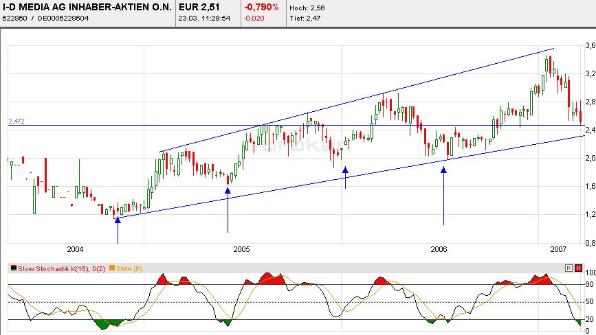 """2007 wird das Jahr der Investitionen und Innovationen bei I-D Media. Investiert werden soll vornehmlich in den Auf- und Ausbau von Standorten in Köln und München sowie in neue Aktivitäten im Plattform- und Produktbereich. So erwartet das Unternehmen für das laufende Geschäftsjahr 2007 Umsatzerlöse in Höhe von 23 Mio. EUR, für das Jahr 2008 rund 25 Mio. EUR. Die Ergebnismarge wird aufgrund der Investitionen in 2007 unter 10 Prozent liegen, für 2008 wird eine EBIT-Marge um 10 Prozent prognostiziert."""