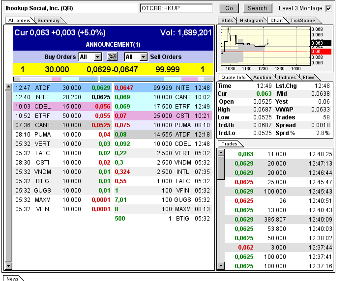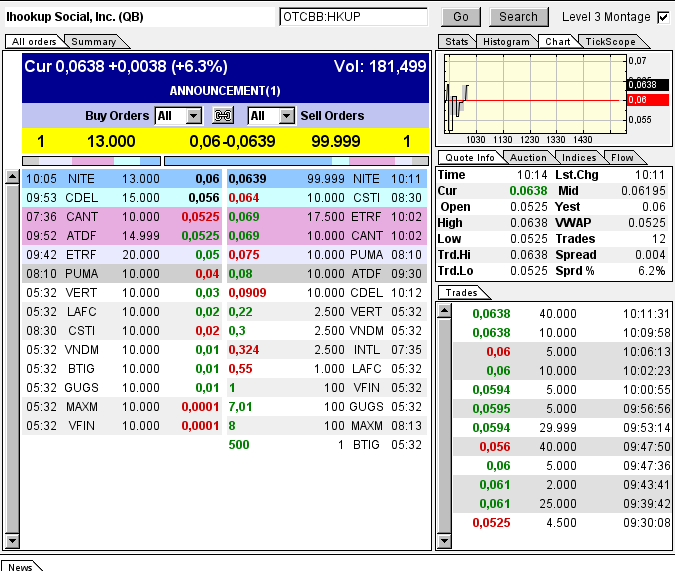 Nach dem Resplit im Verhältnis 20:1 und der Umbenennung der Firma von Titan Iron Ore in IHookup Social Inc wurde es Zeit auch einen Thread der unter dem aktuellen Namen steht zu eröffnen. Die Aktie findet sich unter folgenden Daten: