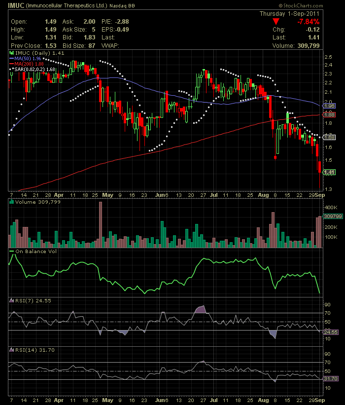 It was certainly nice to see that the conference was buzzing with activity. The markets may appear gloomy and unpredictable, but those sentiments appear to be a far cry from 2008 levels. There was definitely a sense of optimism and a certain upbeat atmosphere in the air, complete with plenty of investors and deal makers floating back and forth between presentation sessions. . While some commented that Rodman has not been doing as many money raises as it has in previous years, some of the fund and institutional types at the event seemed eager to not only take in the live presentations during the day, they were also eager to attend the after hour cocktail parties and mixers. We can report many standing-room only affaiirs of both flavors. In fact, institutional buyers were apparently quite interested in snagging some of the suddenly discounted shares of companies we actively cover here. Thus the recent strength of Immunocellular Therapeutics (IMUC.OB), whose shares have broken their recent downtrend and have become very active since the conference. Successful presentations and road shows will do that for you.