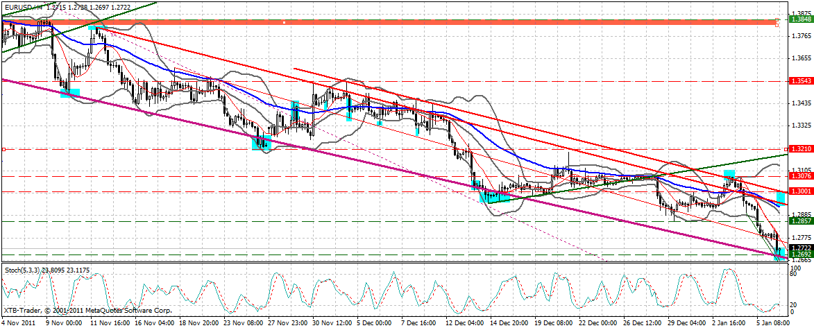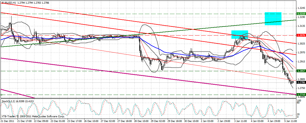 Der Abwärtstrend ist intraday derart ausgeprägt, dass bisher die EMA 9 hielt. Kurz darüber wartet bereits das mBB 15er  bei 1,2797.