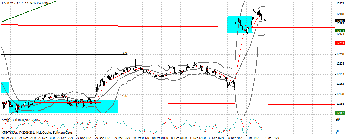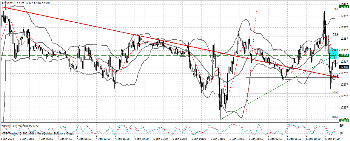 Der DJ brach gestern aus seinen mehrtägigen AWT aus. Im nächtlichen Handel kam es zu einem leicht überschießenden Pullback. Ausgehend von diesem Pullback wurde der kurzfr. Horizontalwiderstand bei 12413 F fast erreicht. Es folgte eben ein scharfer Abprall, der auch den kurzfristigen Intra-AUT durchbrach. Das nächtliche TT bei 12284 F wurde leicht überschießend getestet.