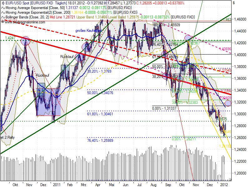 Indiz wird sein, ob die steigende EMA 9 bei aktuell 1,2764 halt oder nicht.