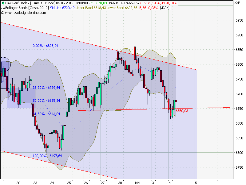 Der Dax F hat mal wieder getäuscht. Sah bis heute Mittag eigentlich nach dem Test des mehrwöchigen ABT aus. Man könnte bald von einem fallenden Dreieick ( noch spekulativ) ausgehen, untere Begrenzung bei 6650 F.