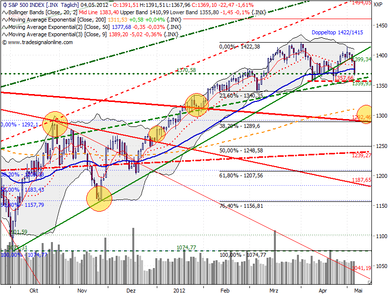 Bei Auslösung des kurzfristigen Doppeltops im SP 500 ( unter 1357) bestehen aber 50-70 Pkt. Abgabepotential.