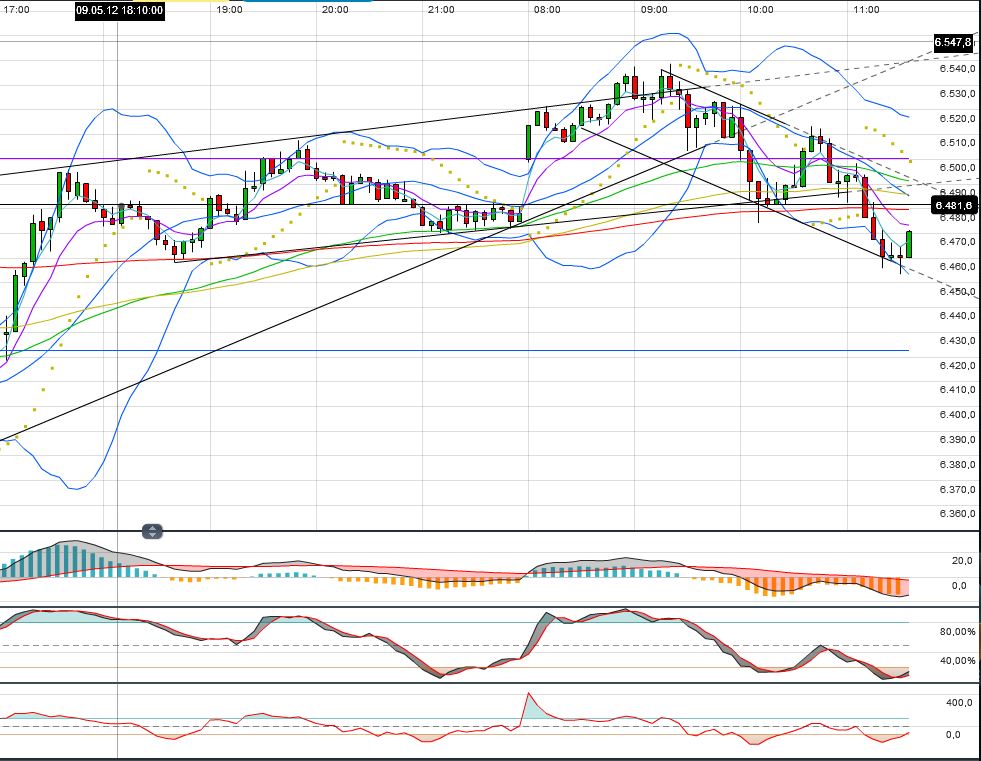 grad gesehen, ich habe noch eine kleine Ergänzung einen Abwärtstrend aus dem Stundenchart, der aktuell bei 12867 Index=12812 Future läuft.