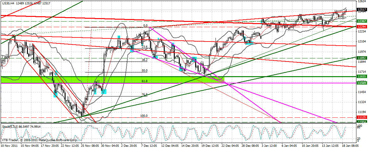 Übergeordnet läuft der DJ F seit Tagen wie auf Schienen. Da der Future vorläuft, war hier bereits zum Jahreswechsel der Ausbruch aus dem maßgeblichen AWT erfolgt. In der Folgezeit pendelte der DJ F um diese AWTL herum. Am heutigen Tage scheint der DJ F nun bestätigt aus dem Intra-Widerstand der vergangenen Tage bei 11460 F ausgebrochen zu sein. Bei dem eben beschriebenen Intra-Pullback wurde exakt diese 12460 F getestet. ZUFÄLLE GIBT ES! :-)