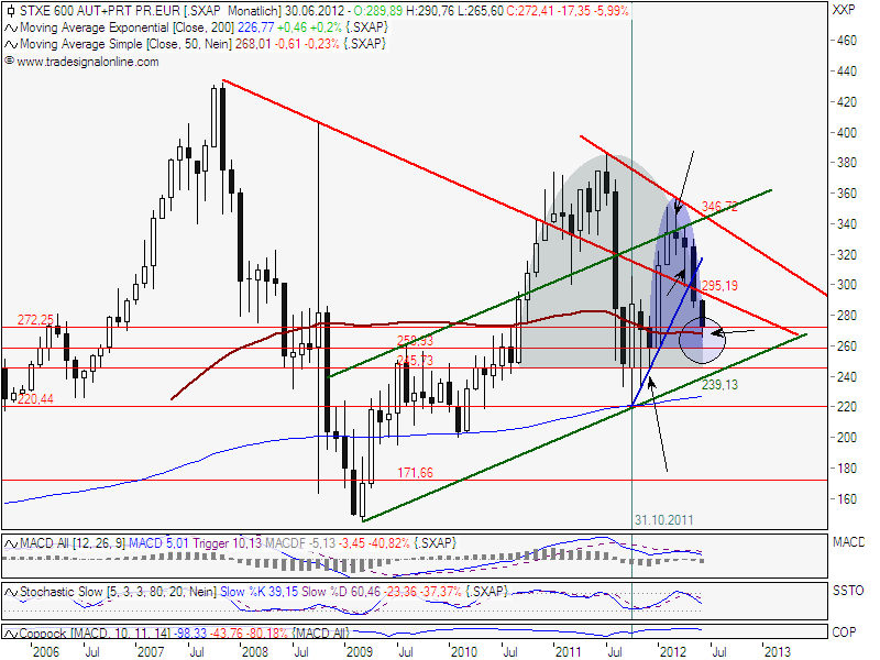 Das von mir ins Spiel gebrachte steigende Dreieck wurde nach dem Ausbruch bis 1,2745 wieder negiert. Der flachere AUTK ( hellgrün) wurde durch das Abtauchen unter 1,262 ebenfalls gebrochen.