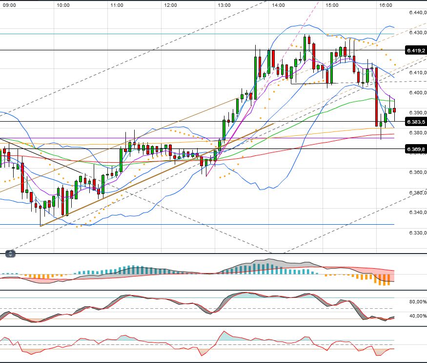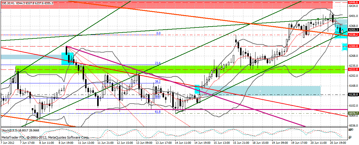 Wie erwartet hat der Dax F gestern das kurzfristige Cluster 6370/85 F erreicht.