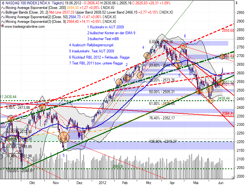 Nach der Rückeroberung des maßgeblichen AUT brach der NDX nun im Bereich 2520 aus dem mehrmonatigen ABT aus.